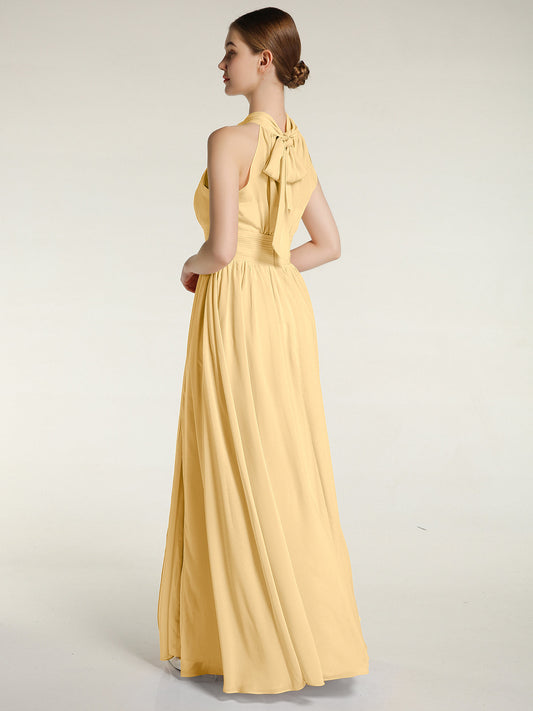 Babaroni ReneeVestido sexy maxi de chiffon con cuello halter y espalda baja Oro