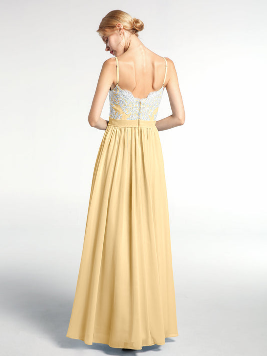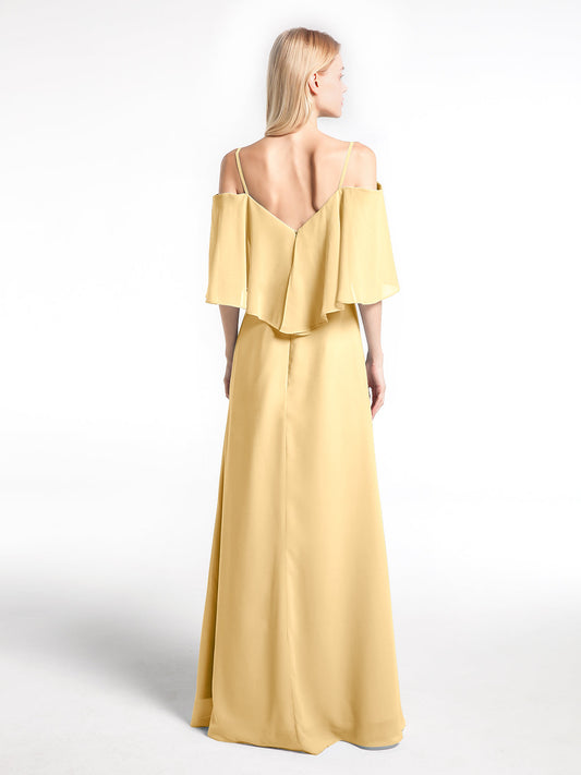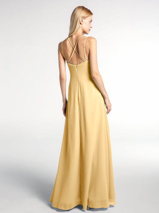 Babaroni NatalieVestido maxi simple de chiffon con escote en V y tirantes finos Oro