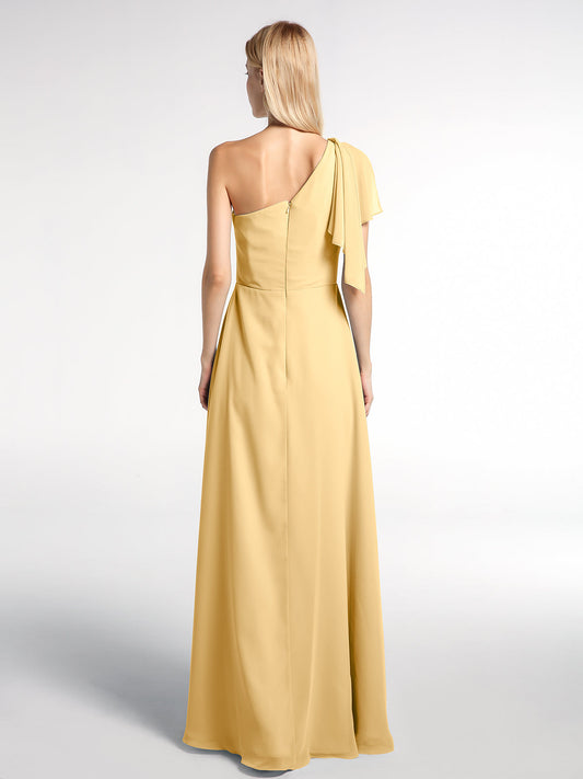 Babaroni SalomeVestido maxi de chiffon de un solo hombro con detalle en cascada Oro