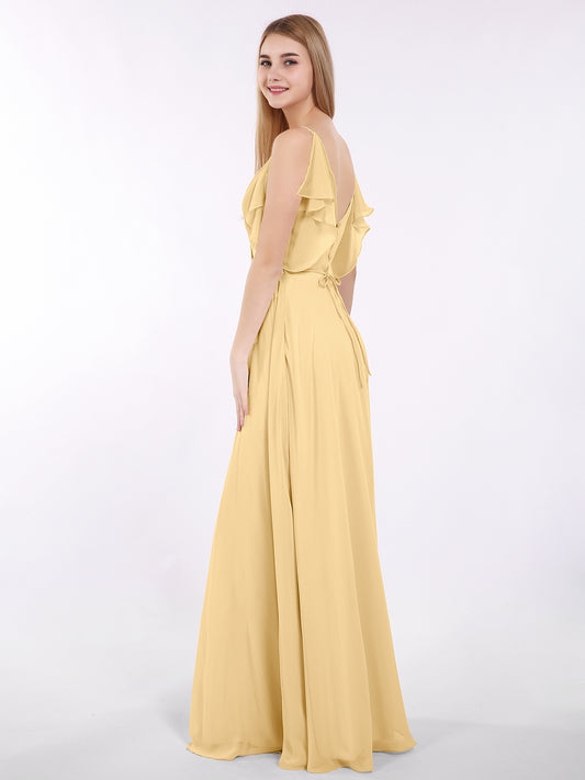 Babaroni GeorgiaGeorgia Escote En V Gasa Largo Vestido De Dama De Honor Oro