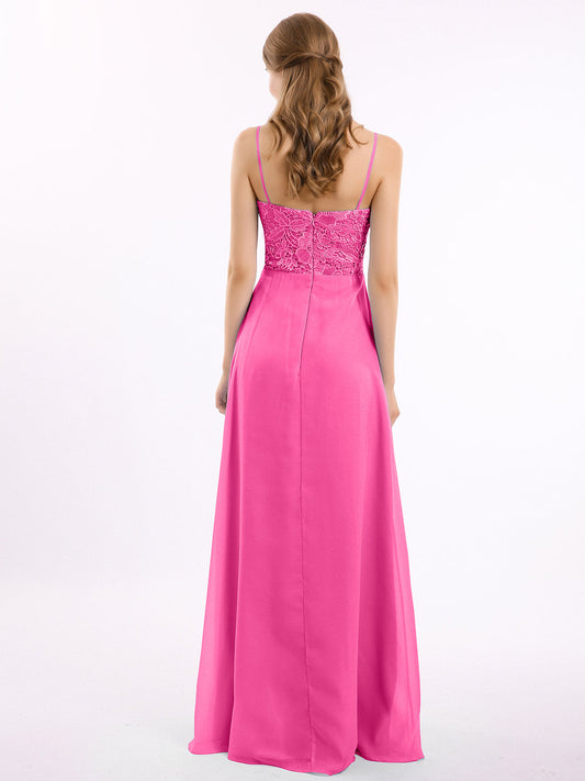 Vestidos largos de encaje y chiffon con tirantes finos Azalea