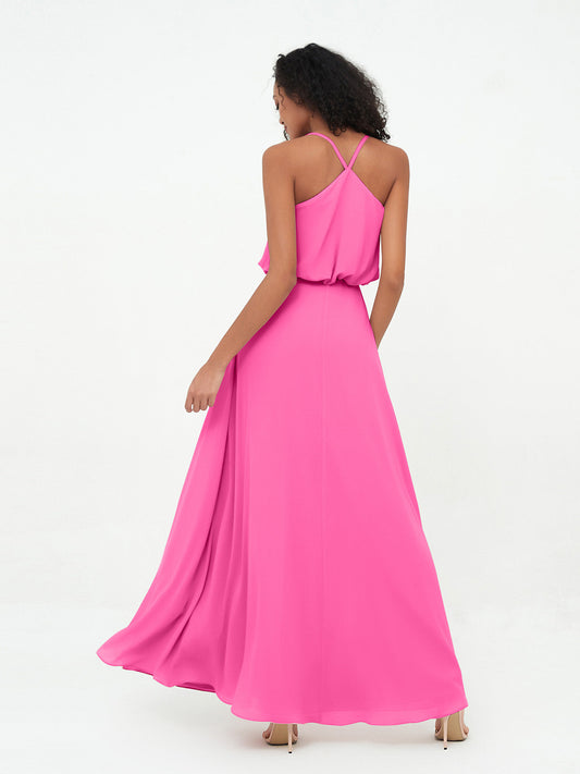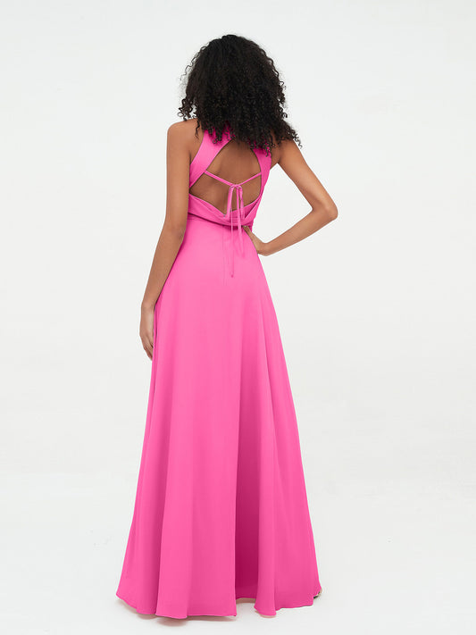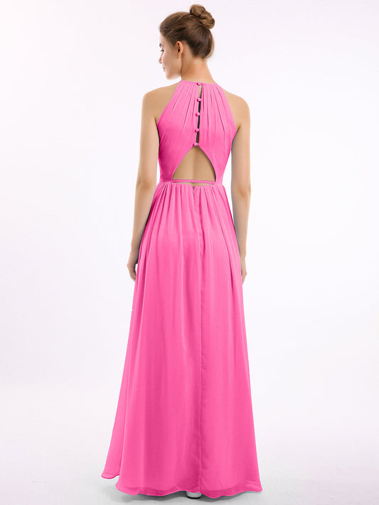 Vestidos largos de chiffon estilo halter con espalda descubierta Azalea