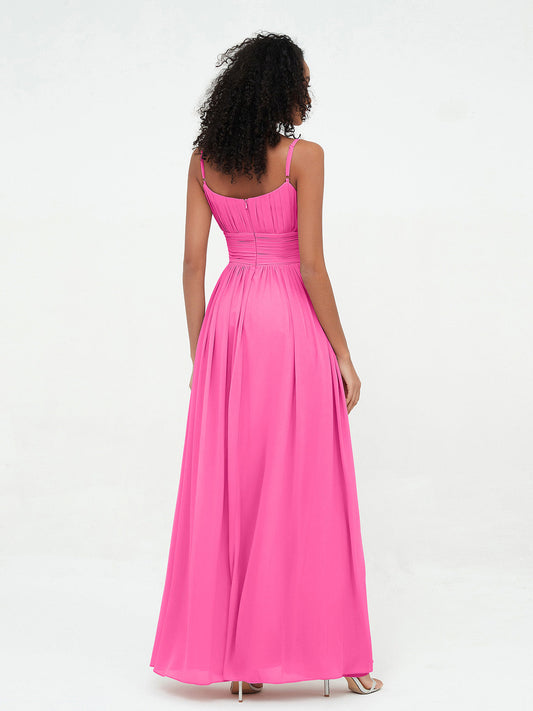 Vestidos de dama de honor de chiffon con tirantes spaghetti y escote en V Azalea