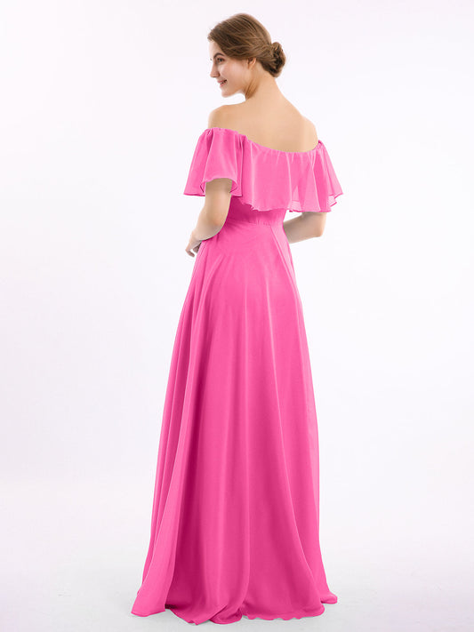 Vestido largo de chiffon con hombros descubiertos Azalea