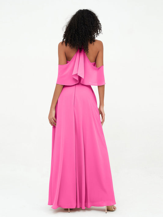 Vestidos máximos de chiffon estilo halter con hombros descubiertos Azalea