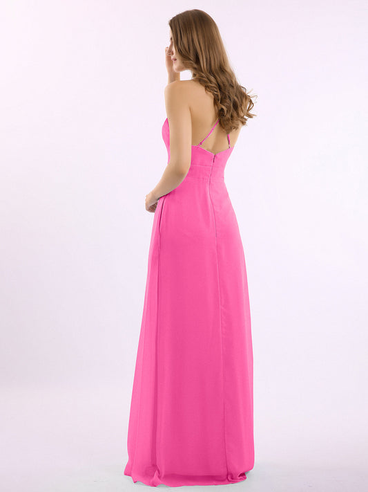 Babaroni LesleyVestidos largos de chiffon estilo halter con doble tirante Azalea
