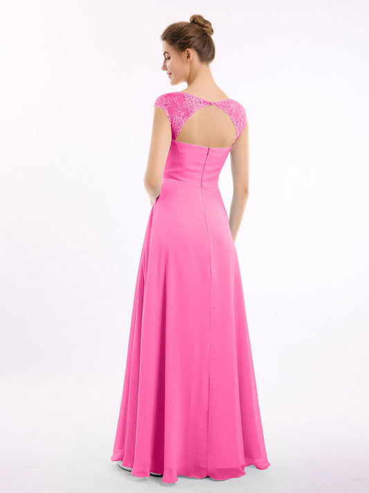 Babaroni MarleyVestidos de dama de honor de chiffon con mangas cap de encaje Azalea