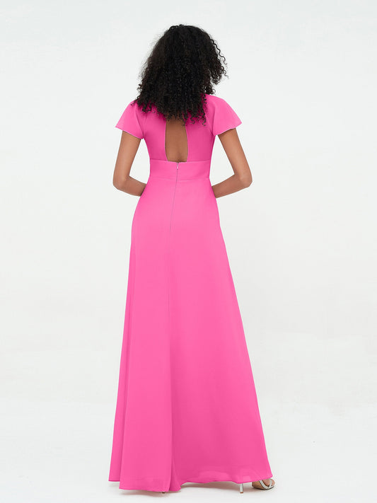 Babaroni SallyVestidos de dama de honor de chiffon con mangas cap y abertura Azalea