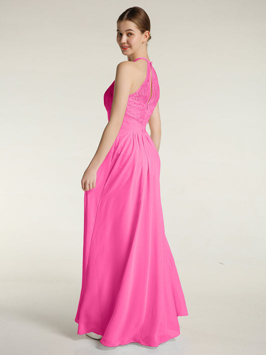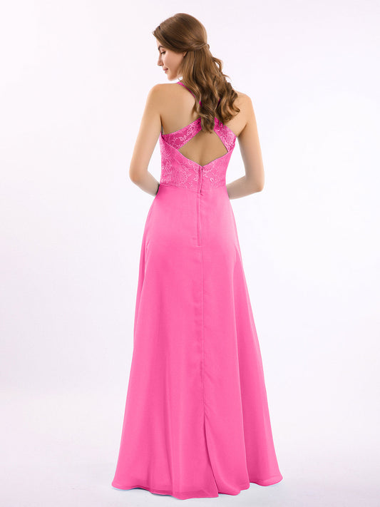 Babaroni AmandaVestidos largos de chiffon y encaje estilo halter Azalea
