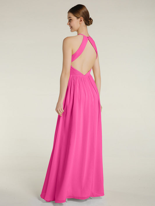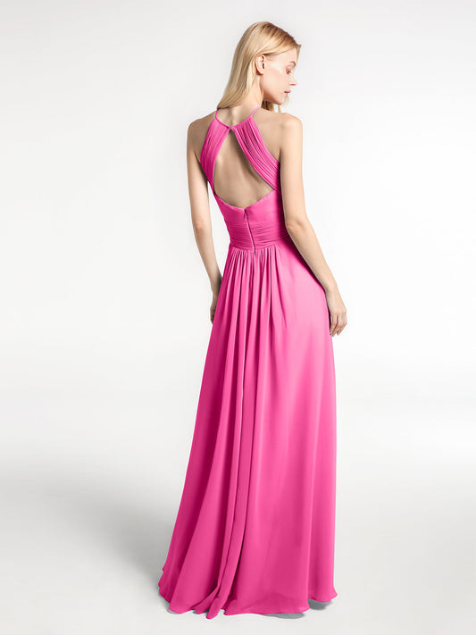 Babaroni VictoriaVestido de chiffon con cuello halter y abertura en forma de cerradura con bolsillos Azalea