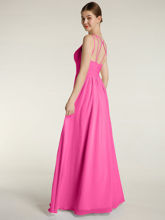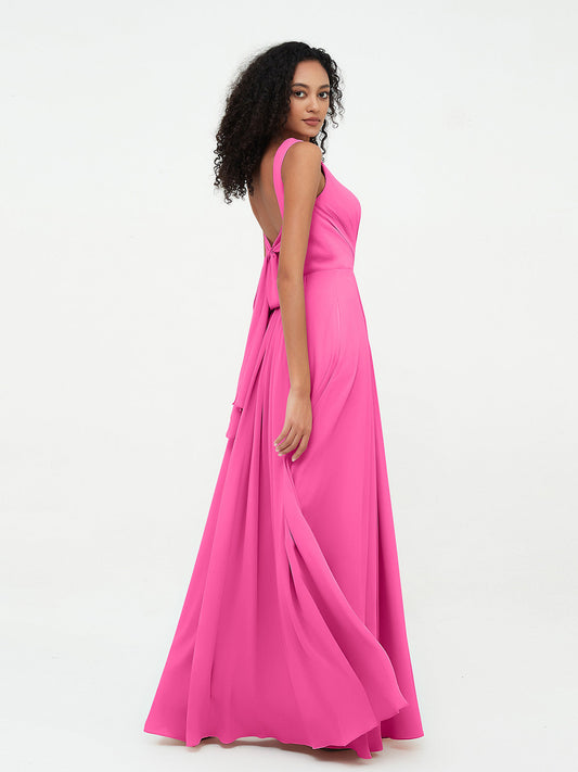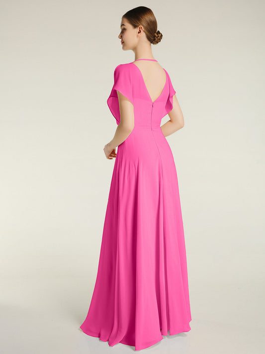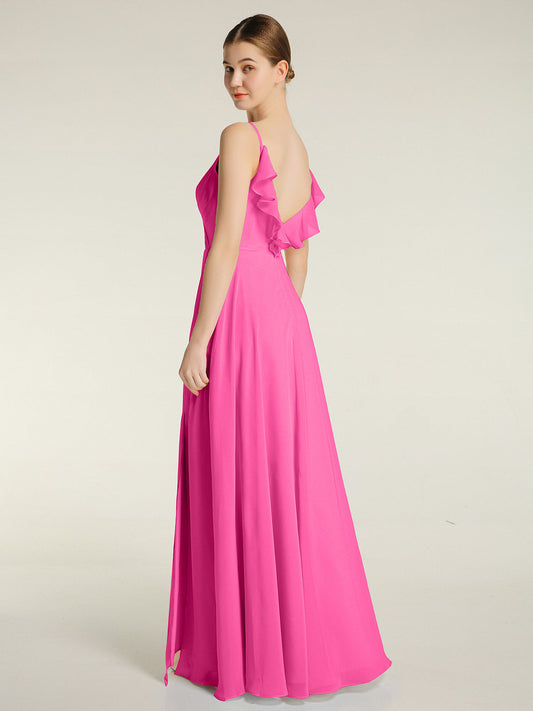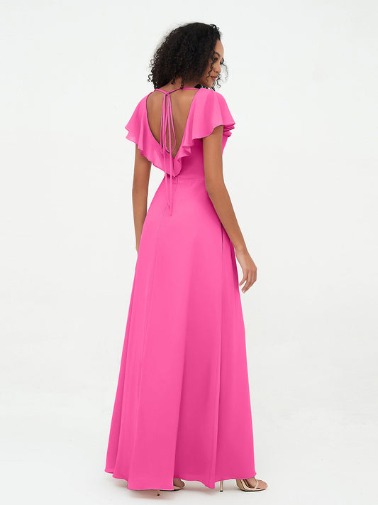 Babaroni VitaVestido de dama de honor de chiffon con escote en V y espalda descubierta Azalea