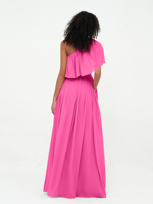 Babaroni MildredVestidos largos de chiffon de un hombro con bolsillos Azalea