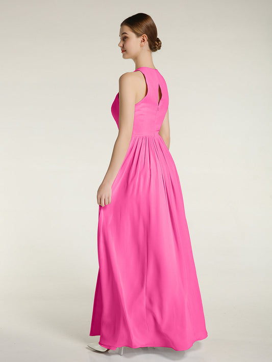 Vestido sencillo de chiffon estilo halter con abertura Azalea