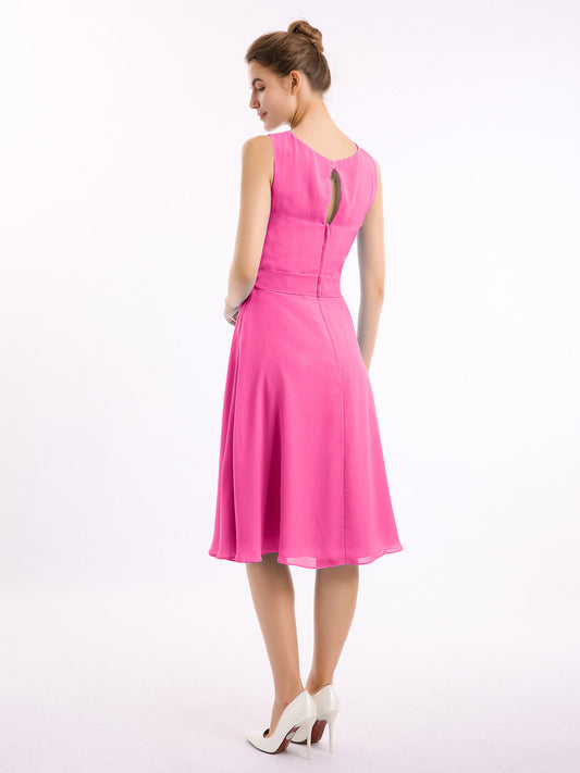 Vestido corto de chiffon con cuello tipo scoop y lazo de cinturón Azalea