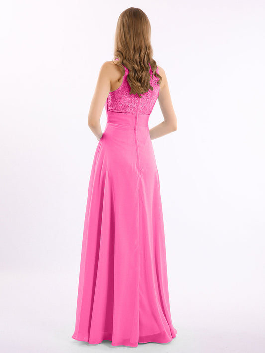 Vestidos largos de chiffon con encaje en escote en V profundo y espalda descubierta Azalea