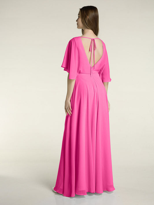 Vestidos largos de dama de honor de chiffon con mangas de volantes Azalea