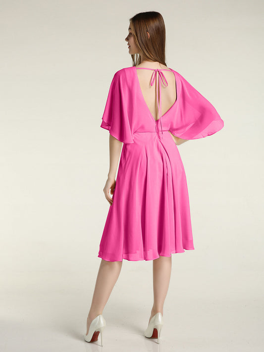 Vestidos cortos de chiffon con escote tipo scoop y mangas de volantes Azalea