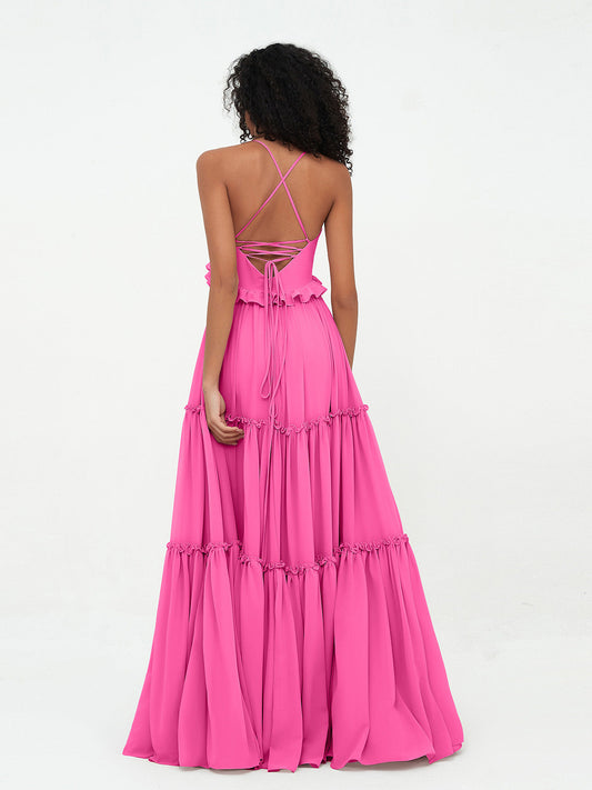 Babaroni UrsulaVestidos máximos bohemios de chiffon con falda escalonada estilo Empire Azalea