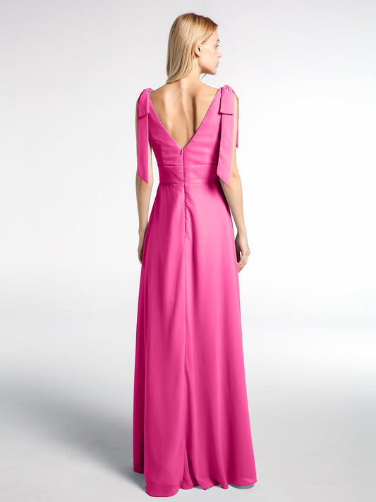 Babaroni CassiopeiaCassiopeia Escote En V Gasa Largo Vestido Con Arco Azalea