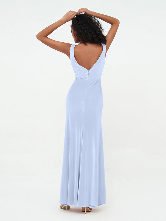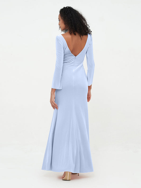 Babaroni EsmeVestidos largos de terciopelo estilo sirena con cuello barco Azul Cielo