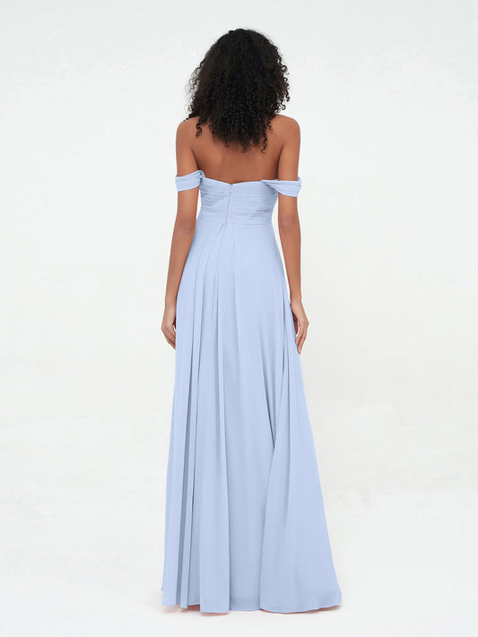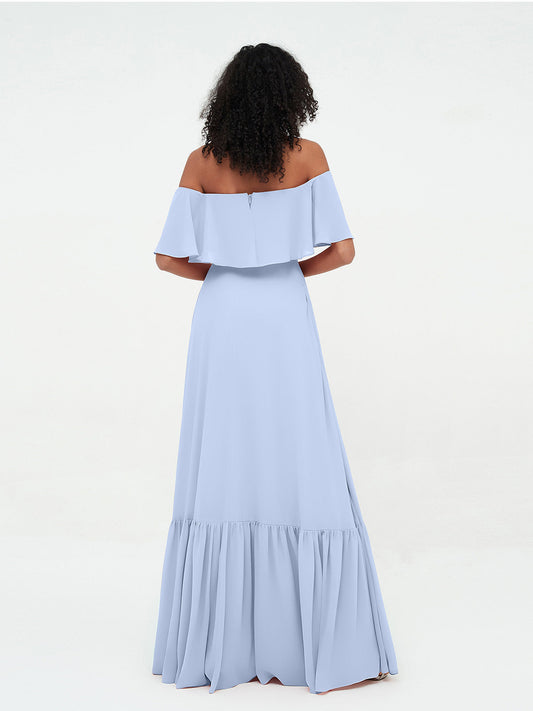 Babaroni VirginiaVestidos máximos de chiffon con falda escalonada estilo off shoulder Azul Cielo