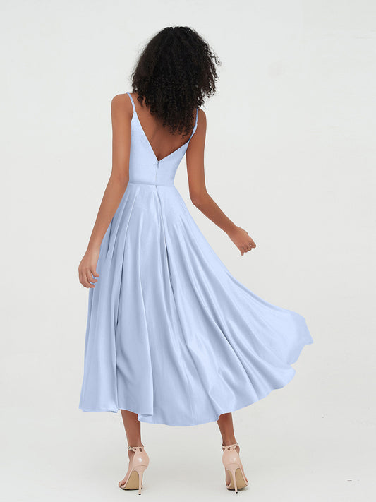 Babaroni AnnaVestidos cortos de chiffon con tirantes para la dama de honor con falda redonda Azul Cielo