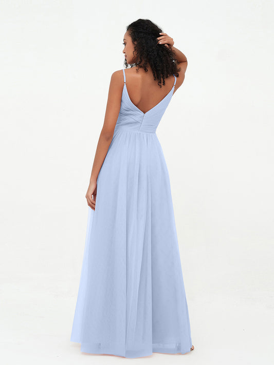 Babaroni MarjorieVestidos largos de tul plisado con tirantes spaghetti Azul Cielo