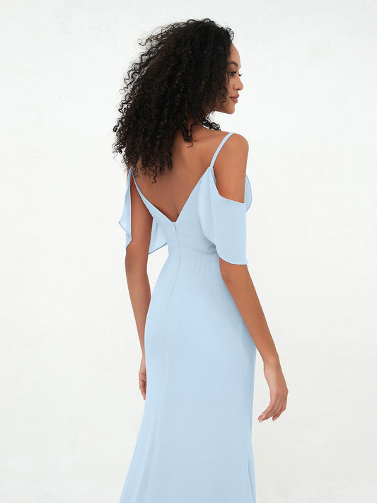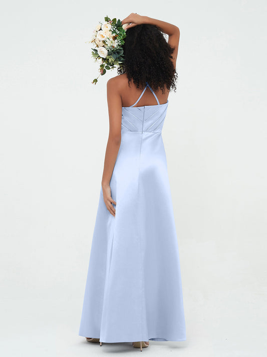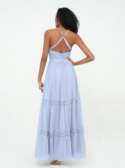 Babaroni AmyVestidos largos de dama de honor de chiffon con tirantes de cuello halter Azul Cielo