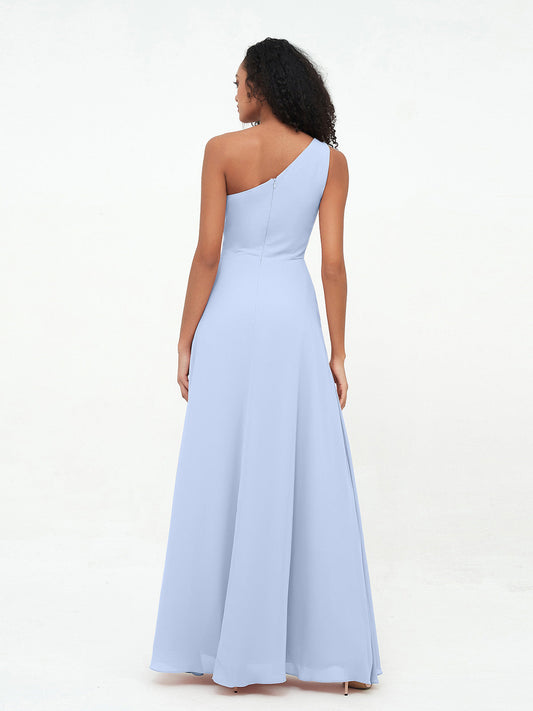 Babaroni XantheVestidos máximos de chiffon de un solo hombro con abertura Azul Cielo