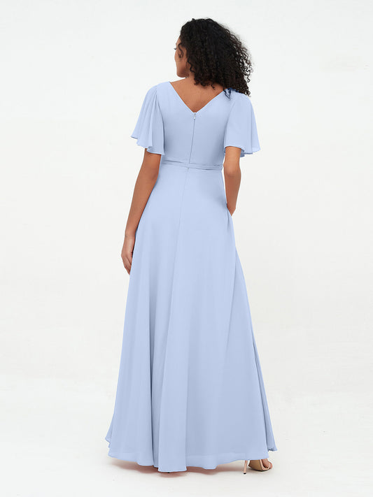 Babaroni YvetteVestidos máximos de chiffon con mangas de volantes y lazo en la cintura Azul Cielo