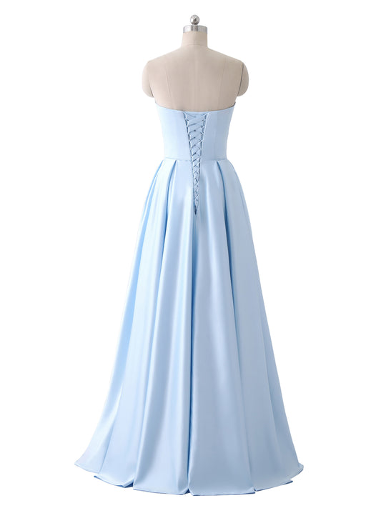 Babaroni StaceyStacey Sin Tirante Saten Vestido Con Cuentas Bolsillo Azul Cielo