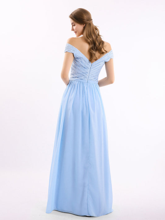 Babaroni NanaVestidos de dama de honor con hombros descubiertos y tirantes finos Azul Cielo