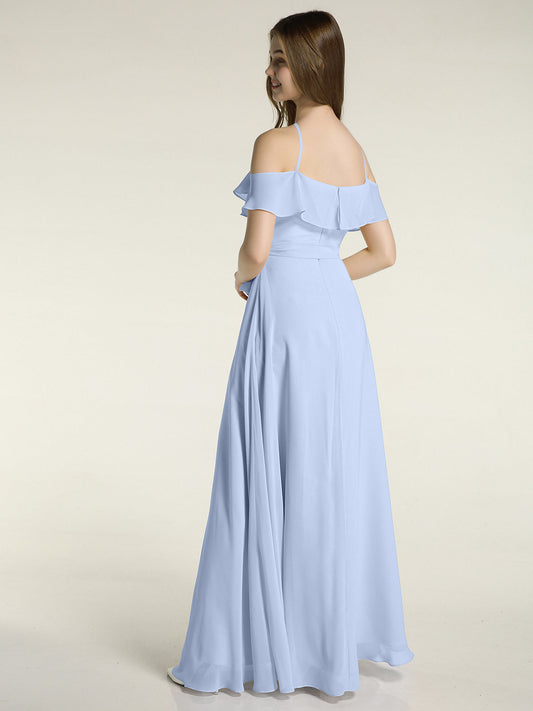 Babaroni LesleyVestidos largos de chiffon estilo halter con doble tirante Azul Cielo