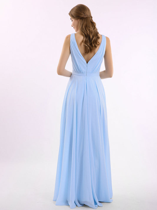 Babaroni VickyVestidos de dama de honor de chiffon con escote en V y tirantes finos Azul Cielo