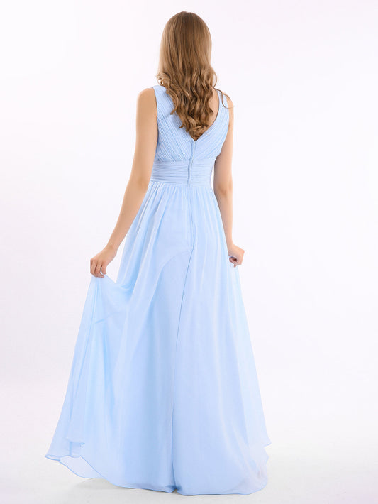 Babaroni GailVestidos largos de chiffon con escote en V hasta el suelo Azul Cielo