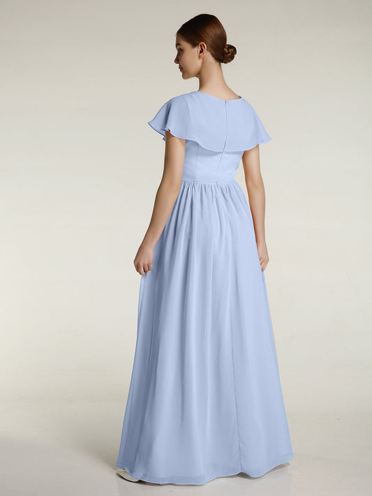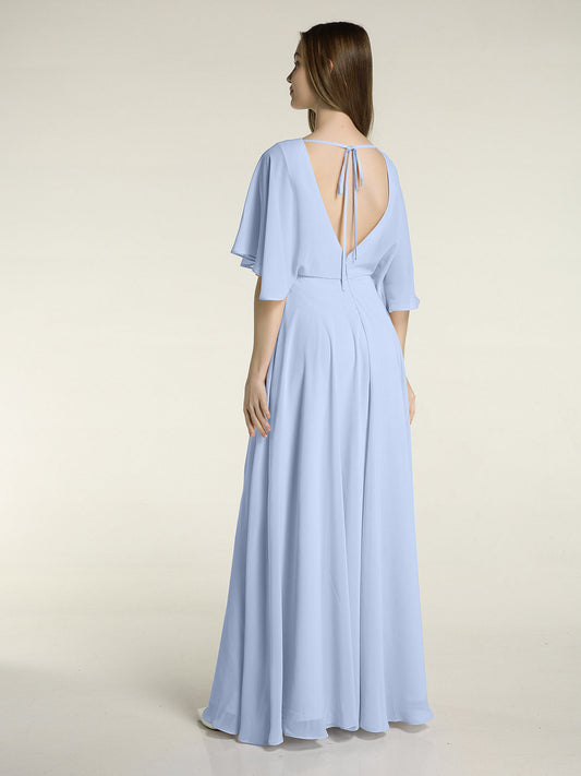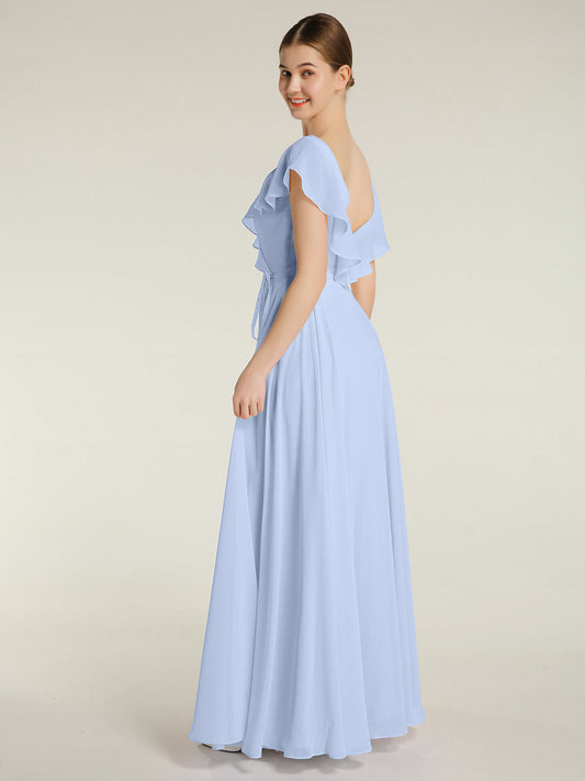 Babaroni MignonVestidos largos de dama de honor de chiffon con mangas de volantes Azul Cielo