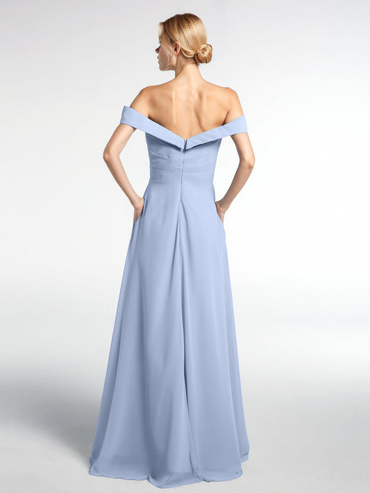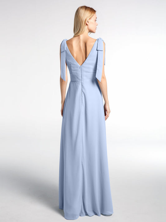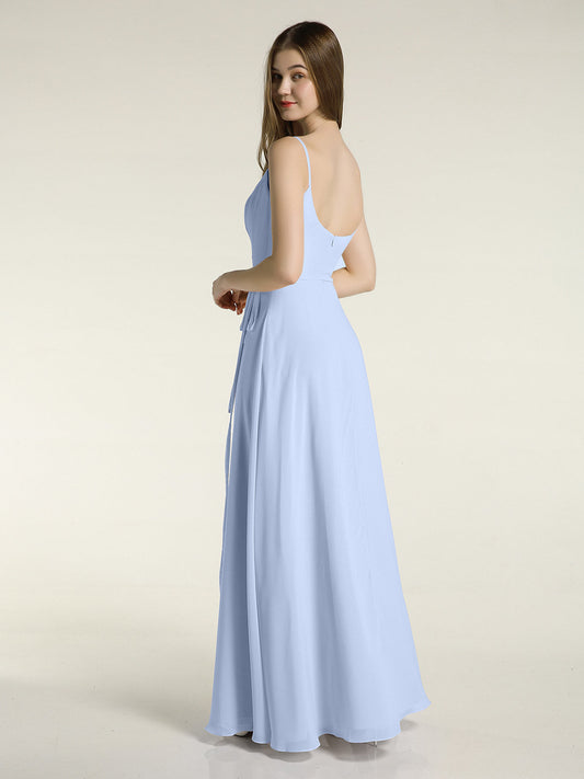Babaroni MaudSencillos vestidos largos de chiffon con tirantes finos y abertura Azul Cielo