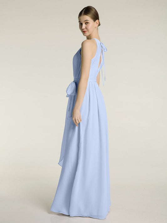 Babaroni JaneVestidos largos de chiffon estilo halter con lazo Azul Cielo