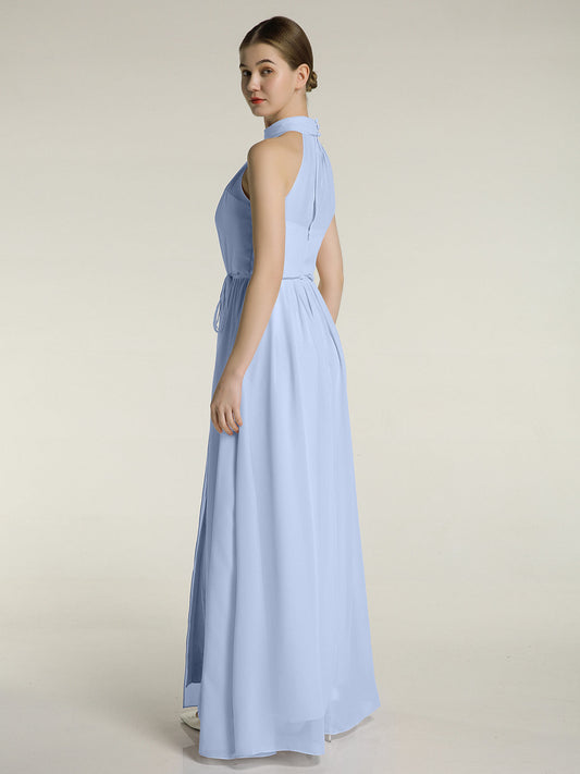 Babaroni MandyVestidos largos de chiffon estilo halter para damas de honor Azul Cielo