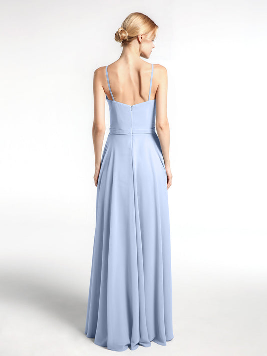 Babaroni EllaVestido sencillo de chiffon con tirantes finos y escote en forma de muesca Azul Cielo