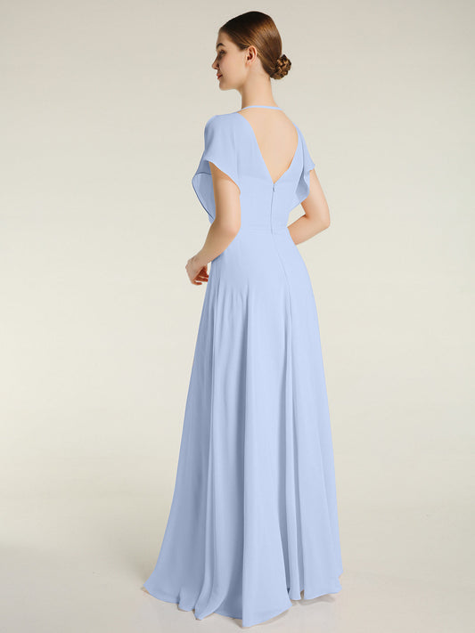 Babaroni LouiseVestidos largos de chiffon con tirantes finos en escote en V y bolsillo Azul Cielo