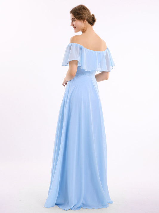 Babaroni HazelVestido largo de chiffon con hombros descubiertos Azul Cielo