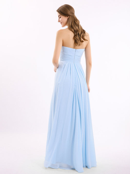 Babaroni AuroraVestidos de chiffon sin tirantes con escote en corazón Azul Cielo