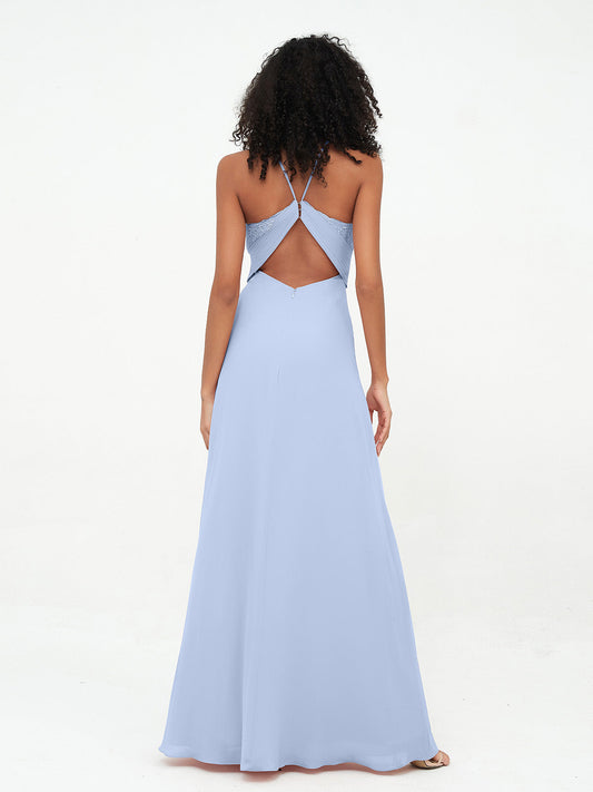 Babaroni FrancesVestidos de halter con top de encaje y espalda descubierta de gasa Azul Cielo