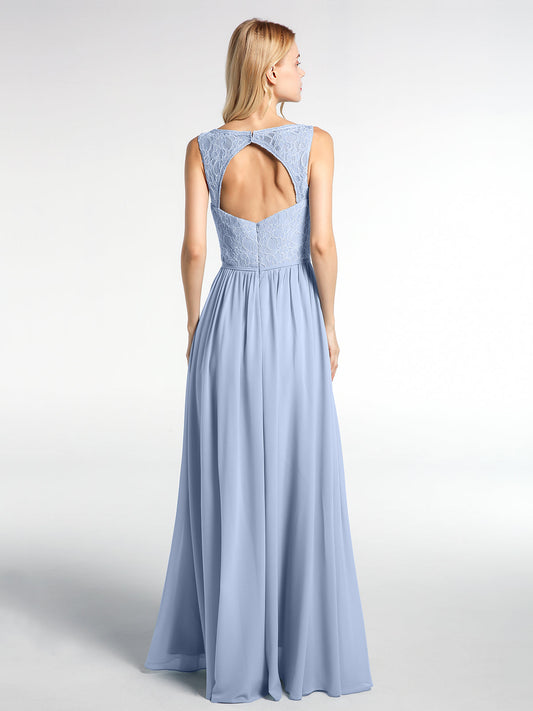 Babaroni HilaryVestido maxi de chiffon con escote en V y parte superior de encaje Azul Cielo