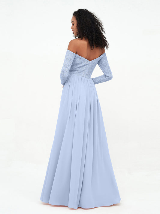 Babaroni JoannaVestidos largos de encaje con mangas largas y hombros descubiertos Azul Cielo