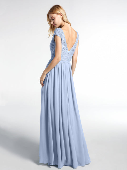 Babaroni LaraineVestido maxi con cuerpo de encaje y falda de chiffon con escote en V Azul Cielo