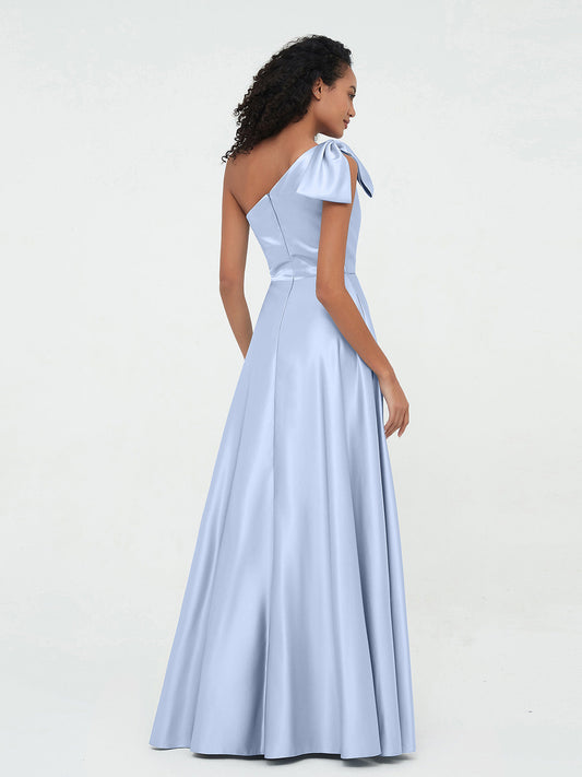 Babaroni PrimroseVestidos largos de satén de un hombro con bolsillos Azul Cielo