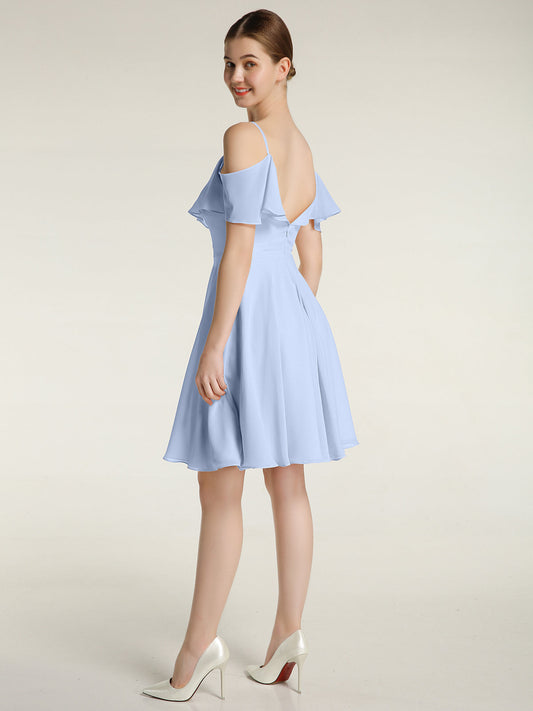 Babaroni DeborahVestidos cortos con escote en corazón y mangas con volantes Azul Cielo