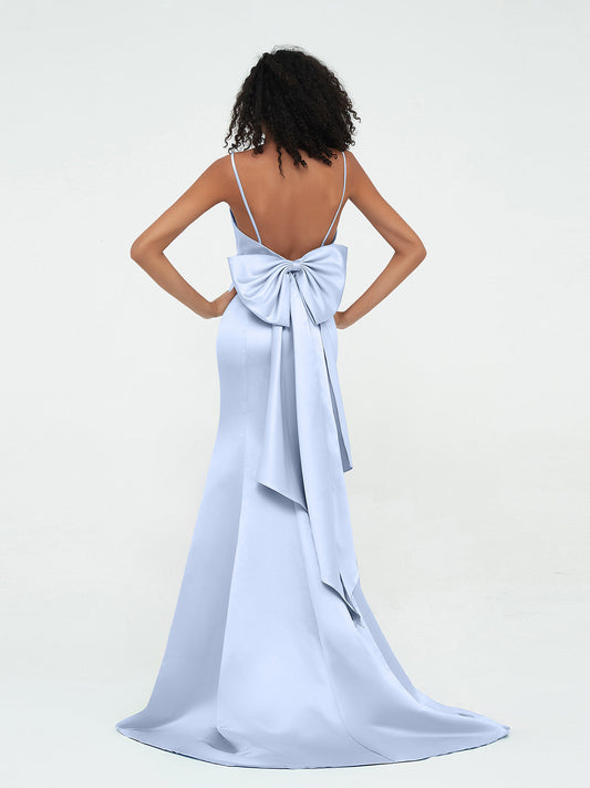 Babaroni MuseVestidos sirena de satén con tirantes spaghetti Azul Cielo